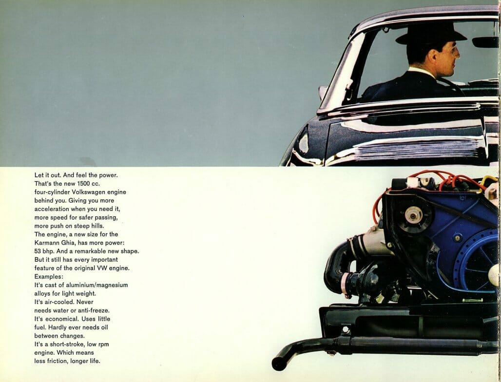 In September 1961, Volkswagen introduced the VW 1500 Karmann Ghia, or Type 34, based on its new Type 3 platform, featuring Volkswagen’s new flat 1500cc engine design, and styling by Italian engineer Sergio Sartorelli. Due to model confusion with the Type 14 1500 introduced in 1967, the Type 34 was known variously as the “Der Große Karmann” (“the big Karmann”) in Germany, “Razor Edge Ghia” in the United Kingdom, or “European Ghia” (or “Type 3 Ghia” among enthusiasts) in the United States. Today the name Type 34 is recognized as the worldwide naming convention.