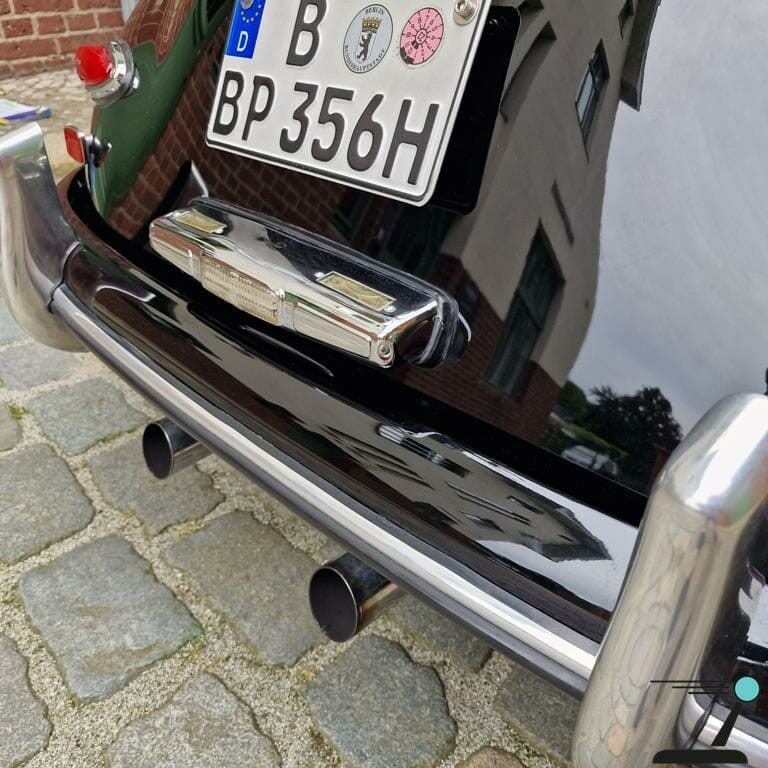 It is not the matching numbers engine, but the number 813734 left the factory after September 1957 as a 1600S and is therefor a period-correct engine. The gearbox shifts precisely and thanks to the disc brakes in the front it stops very well after its acceleration.
