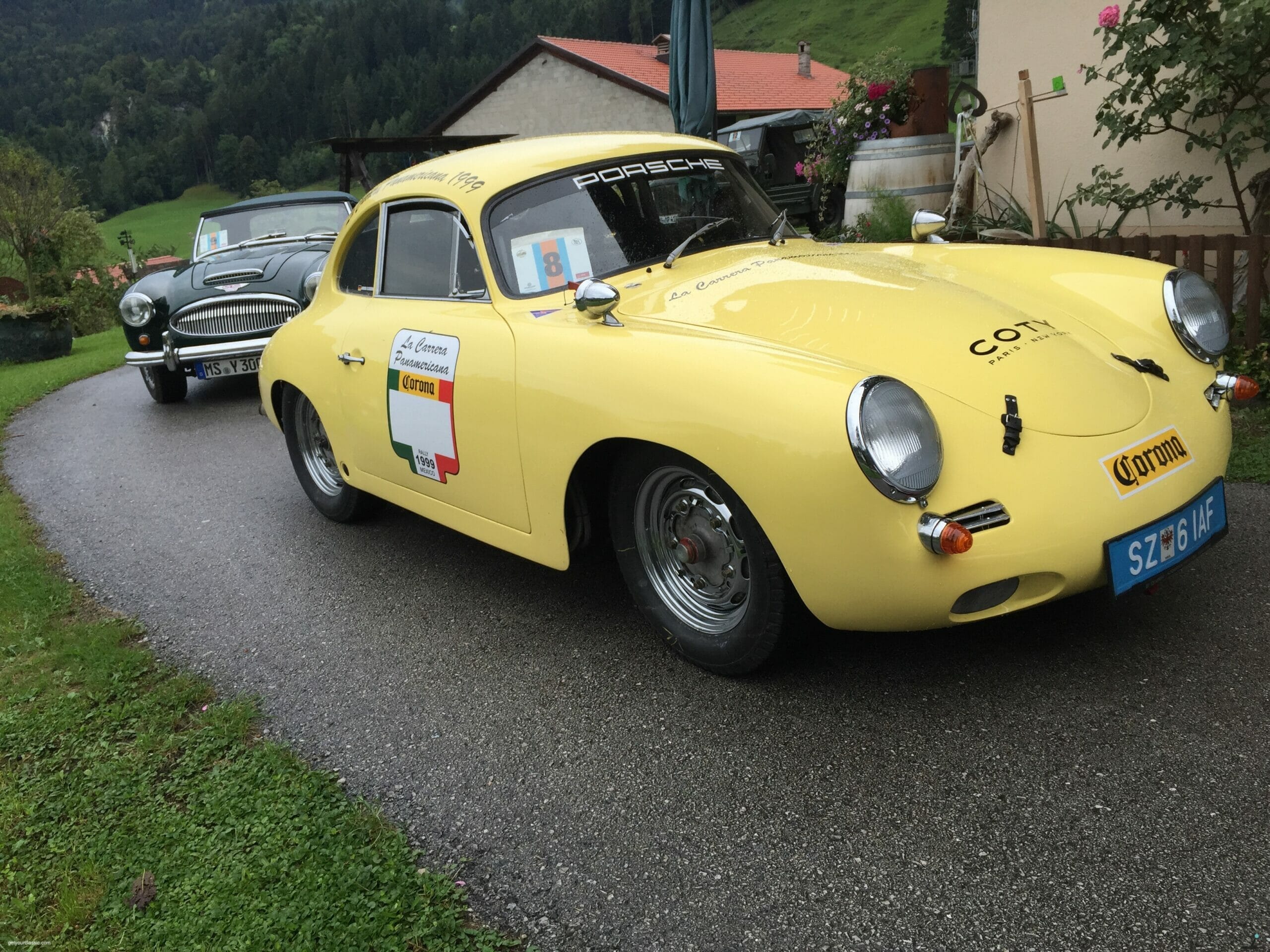 This is a Porsche 356 B T5 Reuter Coupe, the car is a road-legal racing vehicle with an H license plate.