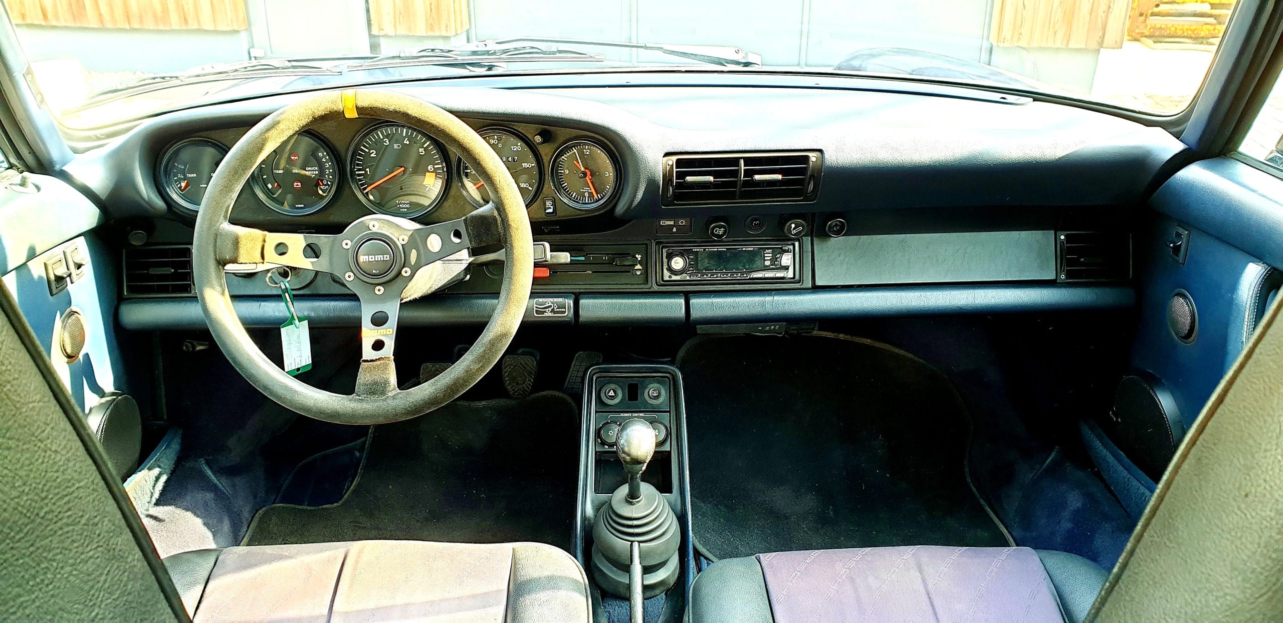 The choice was made quite deliberately for this accident-free California re-import. In contrast to many German bodies, this chassis has never seen a winter and is the ideal basis in terms of rust-free and stiffness of the chassis. The design was deliberately left neutral in the original Porsche colour dark blue K4. The design can be adapted according to the taste of the buyer in consultation and at a corresponding surcharge. No matter if you want a Rothmans or Martini design… many things are possible.