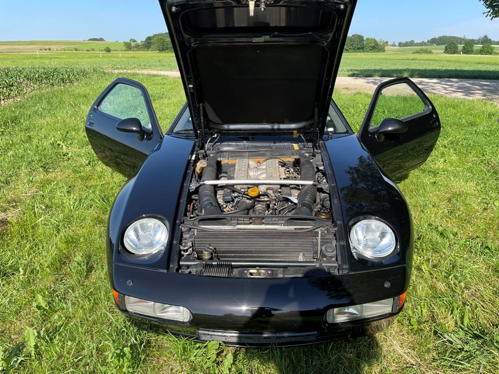 The accident free chassis got repainted 5 years ago in its original factory colour black metallic on a high level and did not show any signs of rusting through. This matching numbers 928 GTS had been well serviced and always been to workshops for repairs, proven by bills. This Porsche 928 GTS was always well serviced as you can see in the service records. The timing belt, incl. water pump and tension rollers had been replaced in December 2018 with a mileage delta from about 2000km to today. The automatic shifts soft and direct as they should and the brakes work fine. The suspension is powerful and the body makes no more noise than the state of the series.