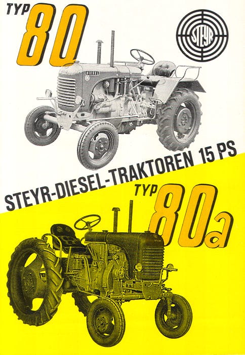 After Steyr Daimler Puch A.G. (SDP) had produced the first Austrian diesel tractor of the post-war period (Steyr 180, 26 hp) in 1947 and sold it with increasing success mainly to medium-sized and large farms, the Steyr diesel tractor type 80 was produced from 1949. The target group to be addressed was the smaller farms. Around 45,000 of this tractor were built until 1964.