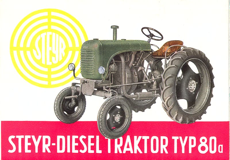 After Steyr Daimler Puch A.G. (SDP) had produced the first Austrian diesel tractor of the post-war period (Steyr 180, 26 hp) in 1947 and sold it with increasing success mainly to medium-sized and large farms, the Steyr diesel tractor type 80 was produced from 1949. The target group to be addressed was the smaller farms. Around 45,000 of this tractor were built until 1964.