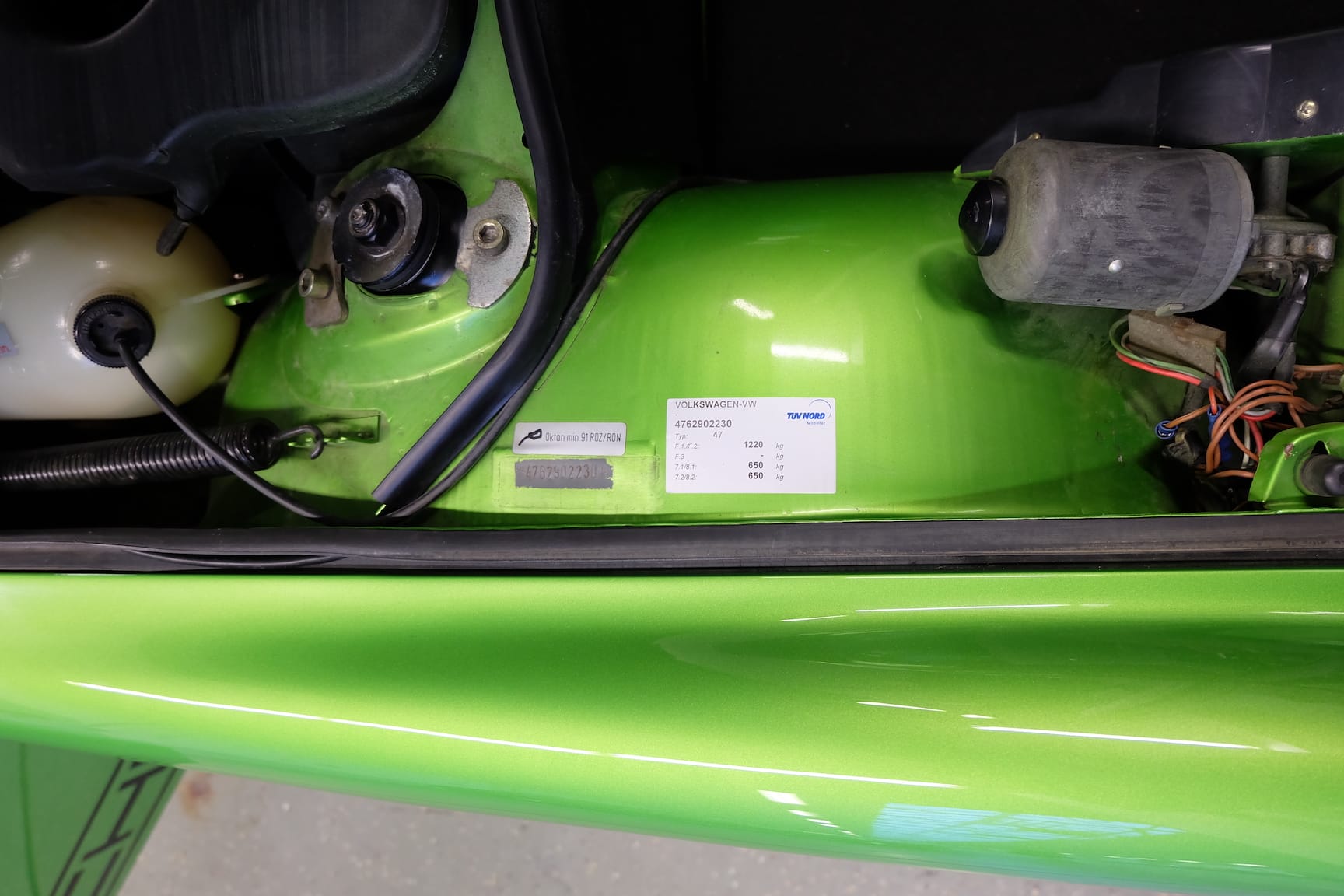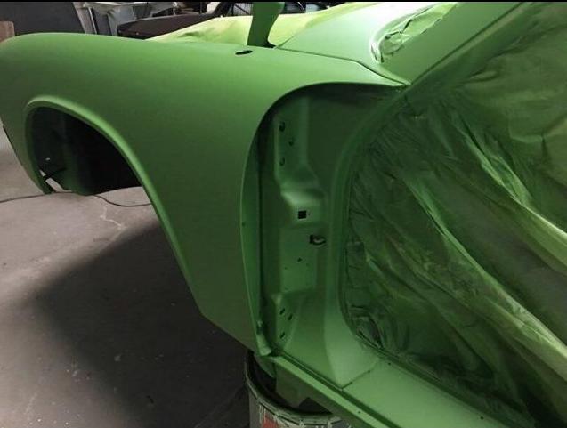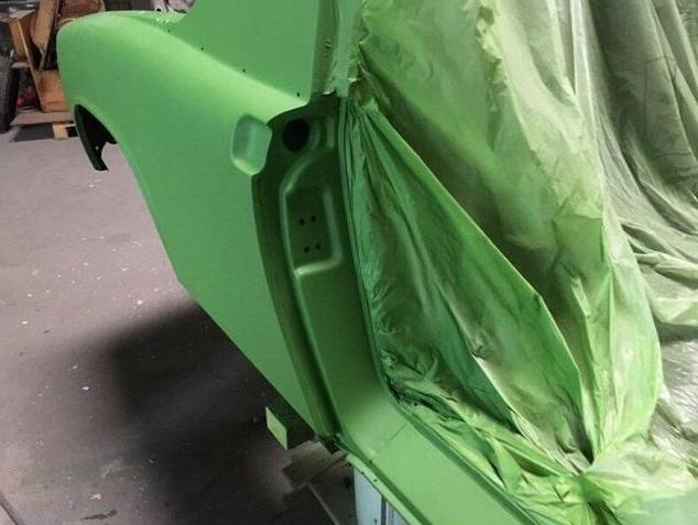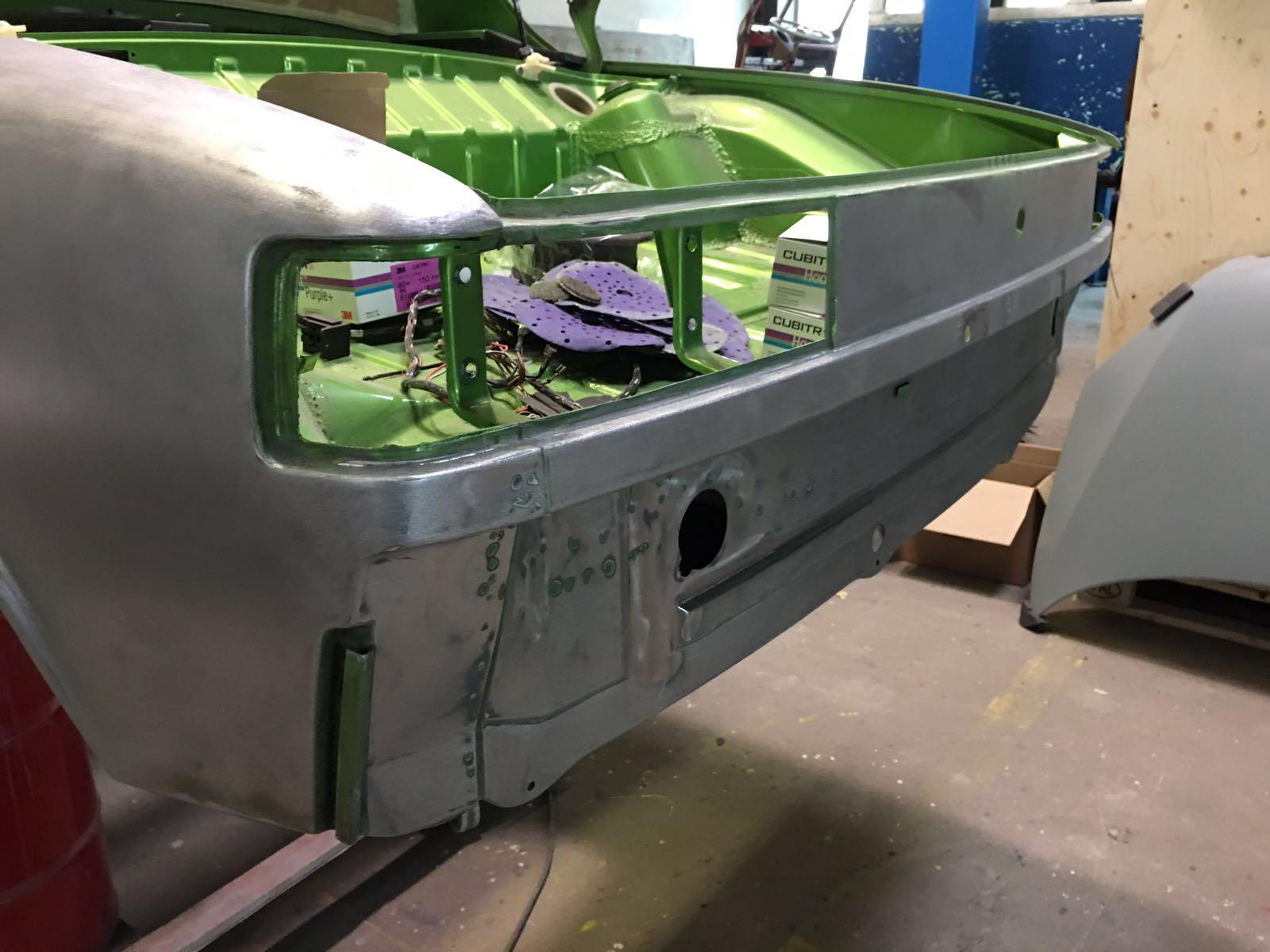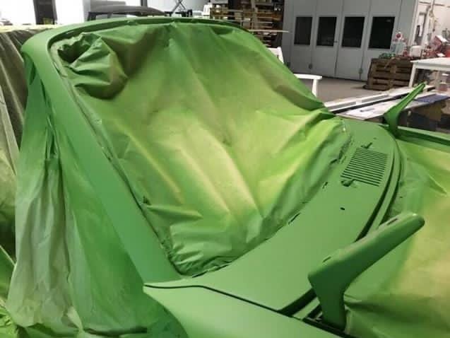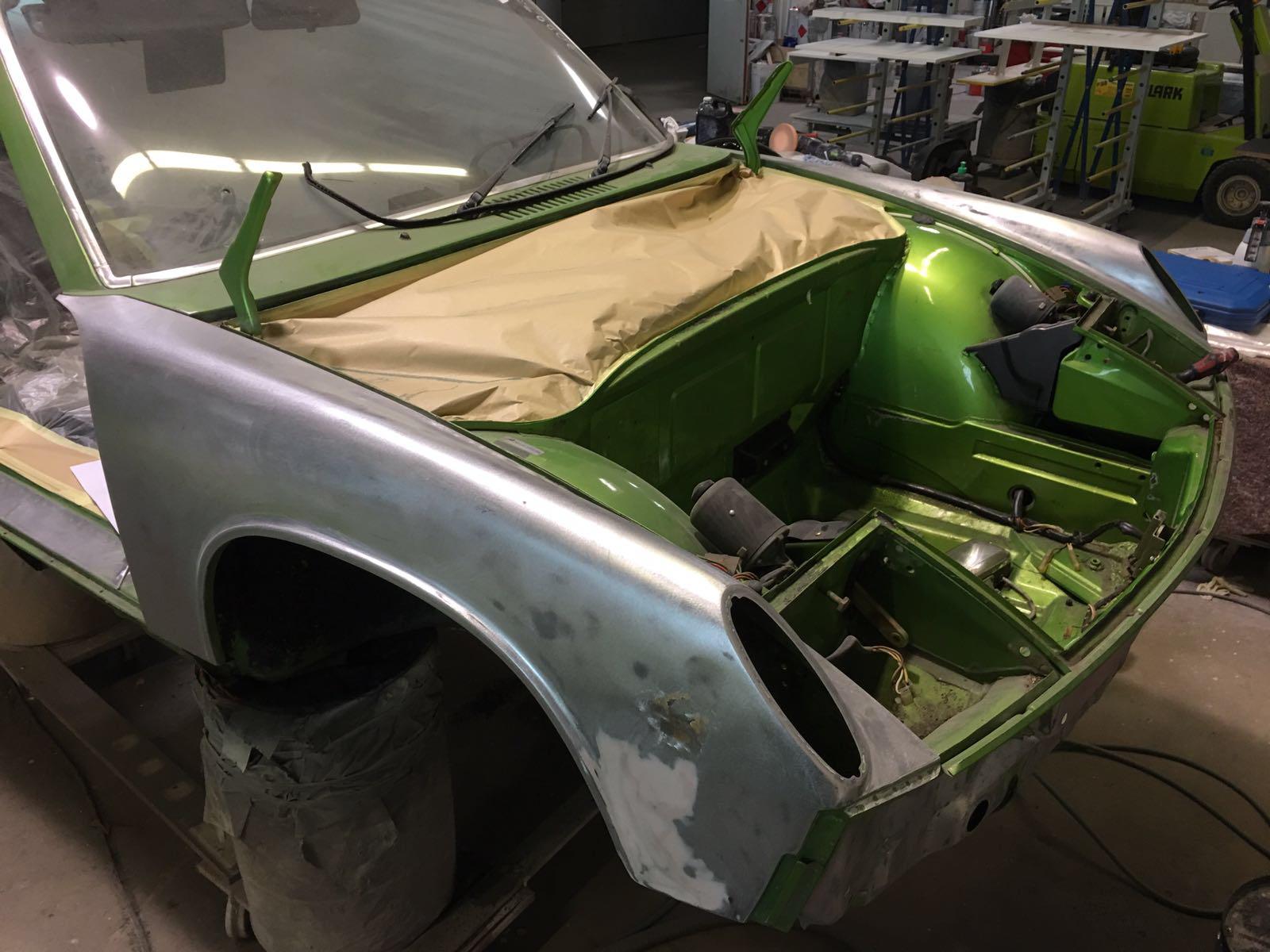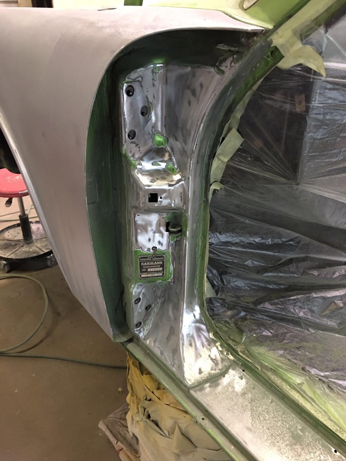 The Car was stripped down and on the outside of the Car, the colour was removed. He kept the original paint on the inside of the Car like the Trunk,l engine Compartment and the storage room for the roof. As the colour was removed the wholes for the side markers of the American version were closed as well to give the side a sleeker look.