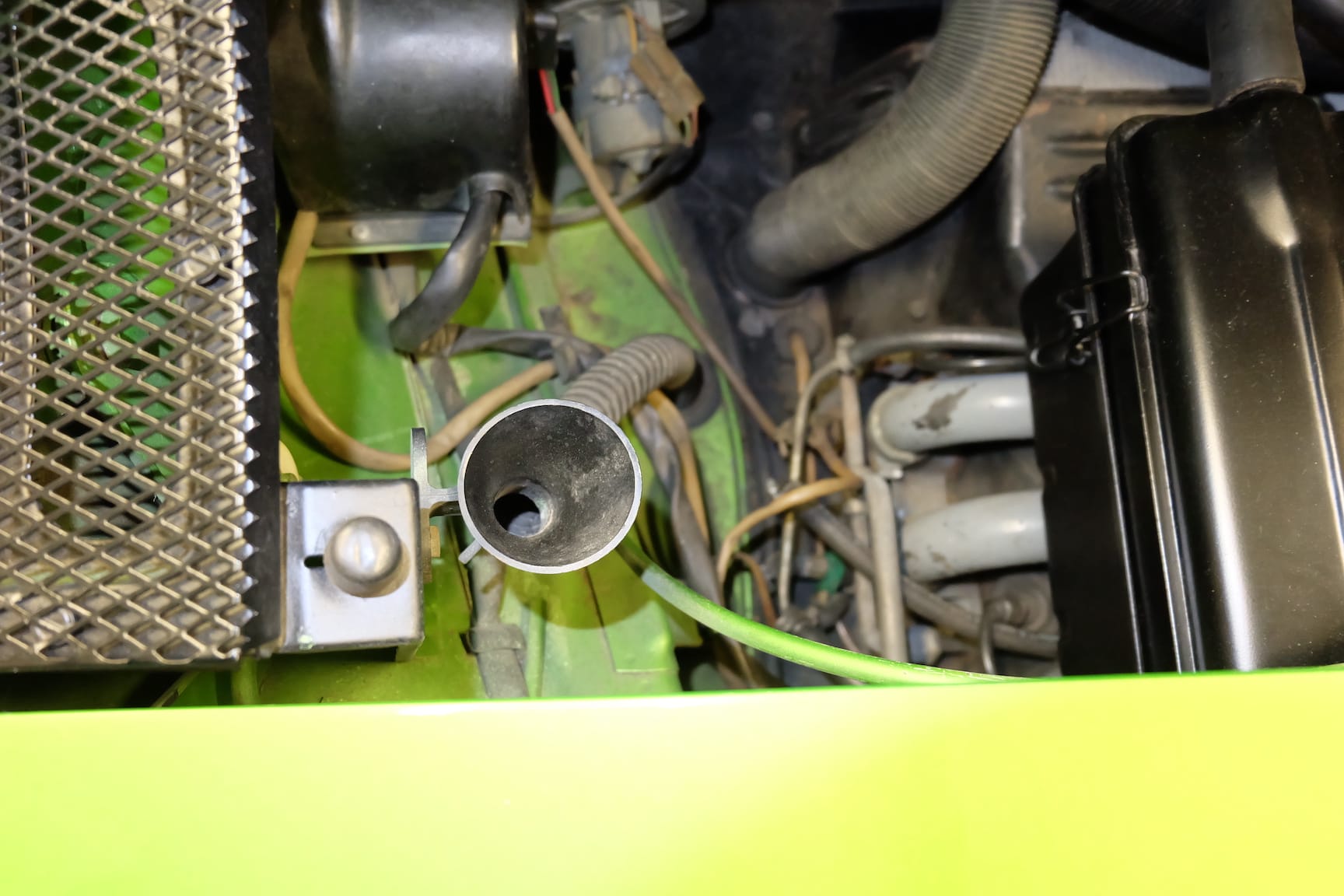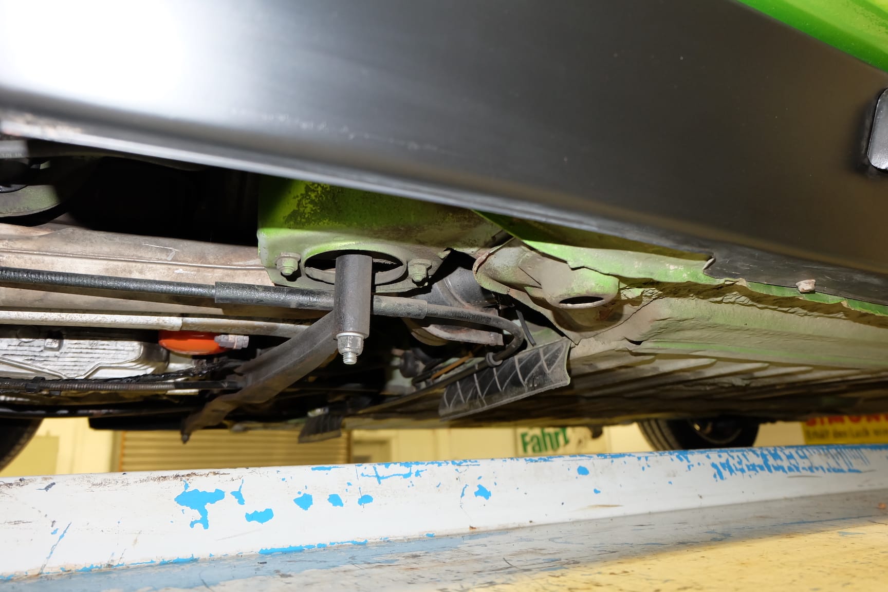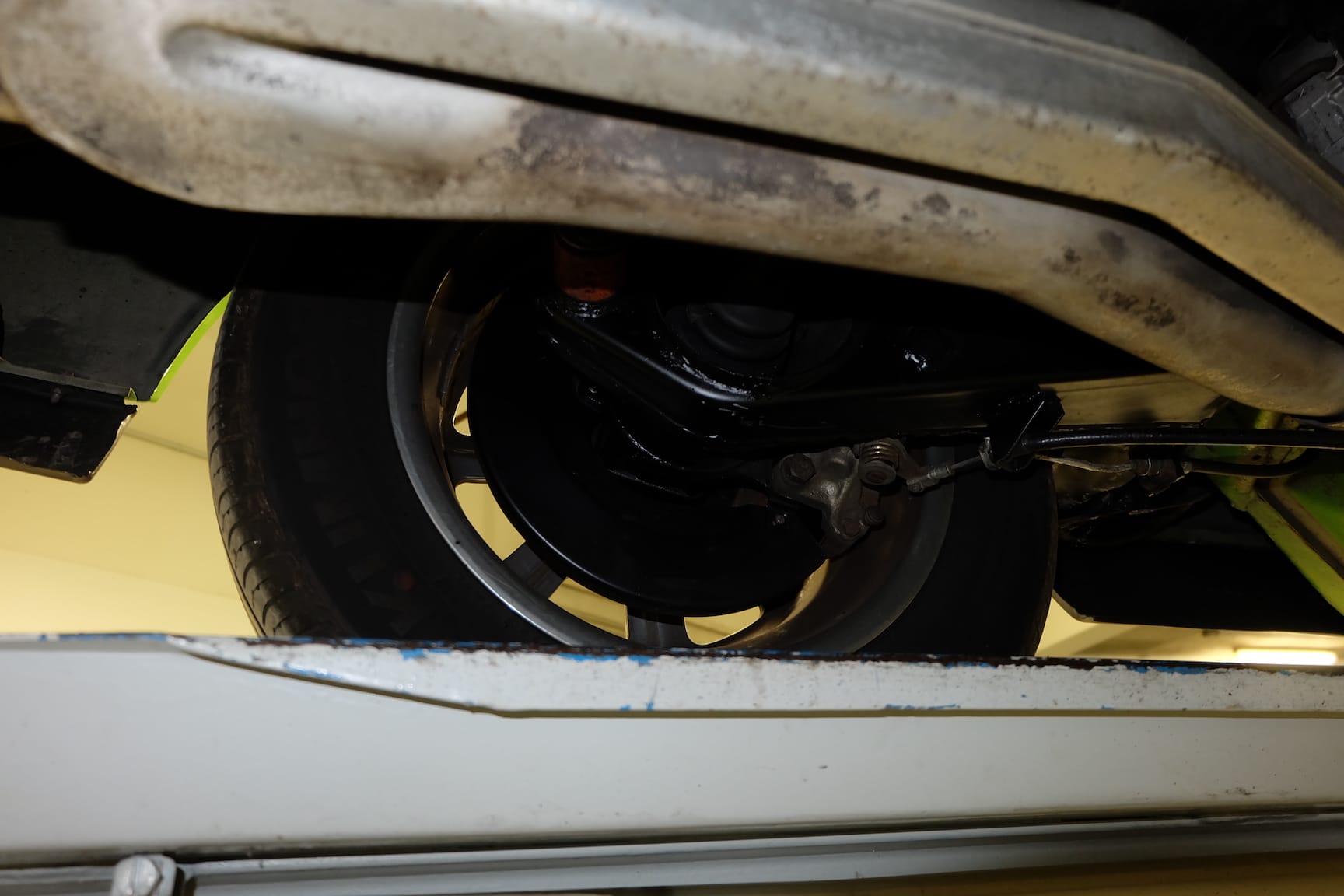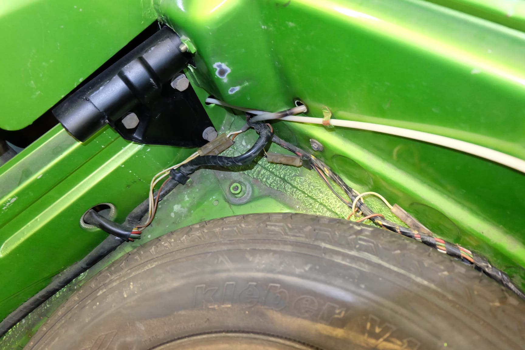 The Car was stripped down and on the outside of the Car, the colour was removed. He kept the original paint on the inside of the Car like the Trunk,l engine Compartment and the storage room for the roof. As the colour was removed the wholes for the side markers of the American version were closed as well to give the side a sleeker look.