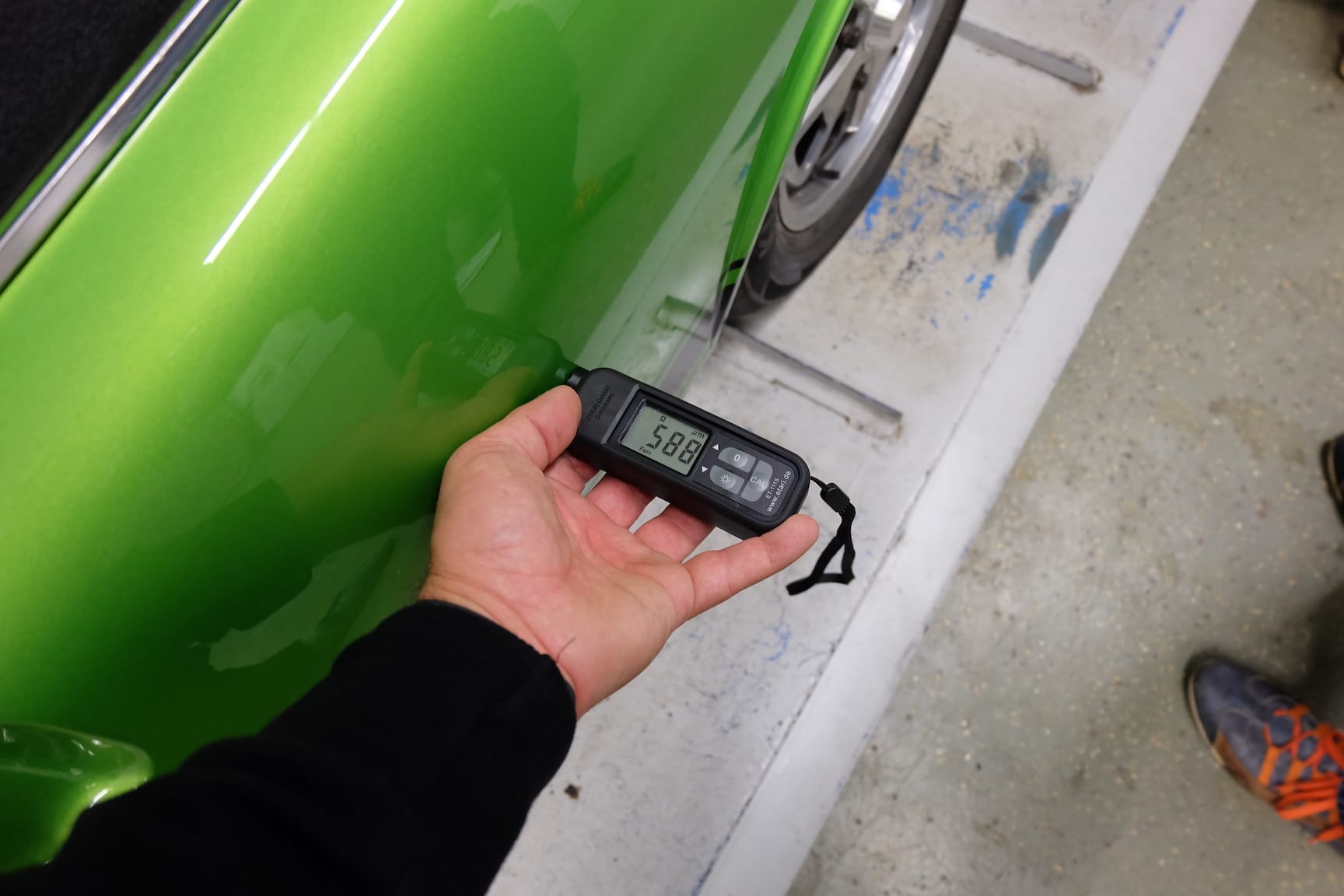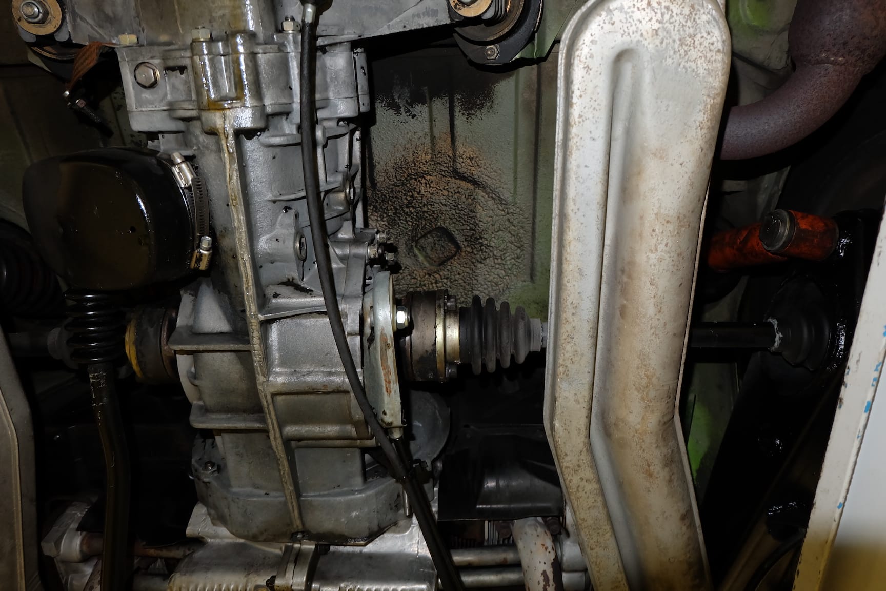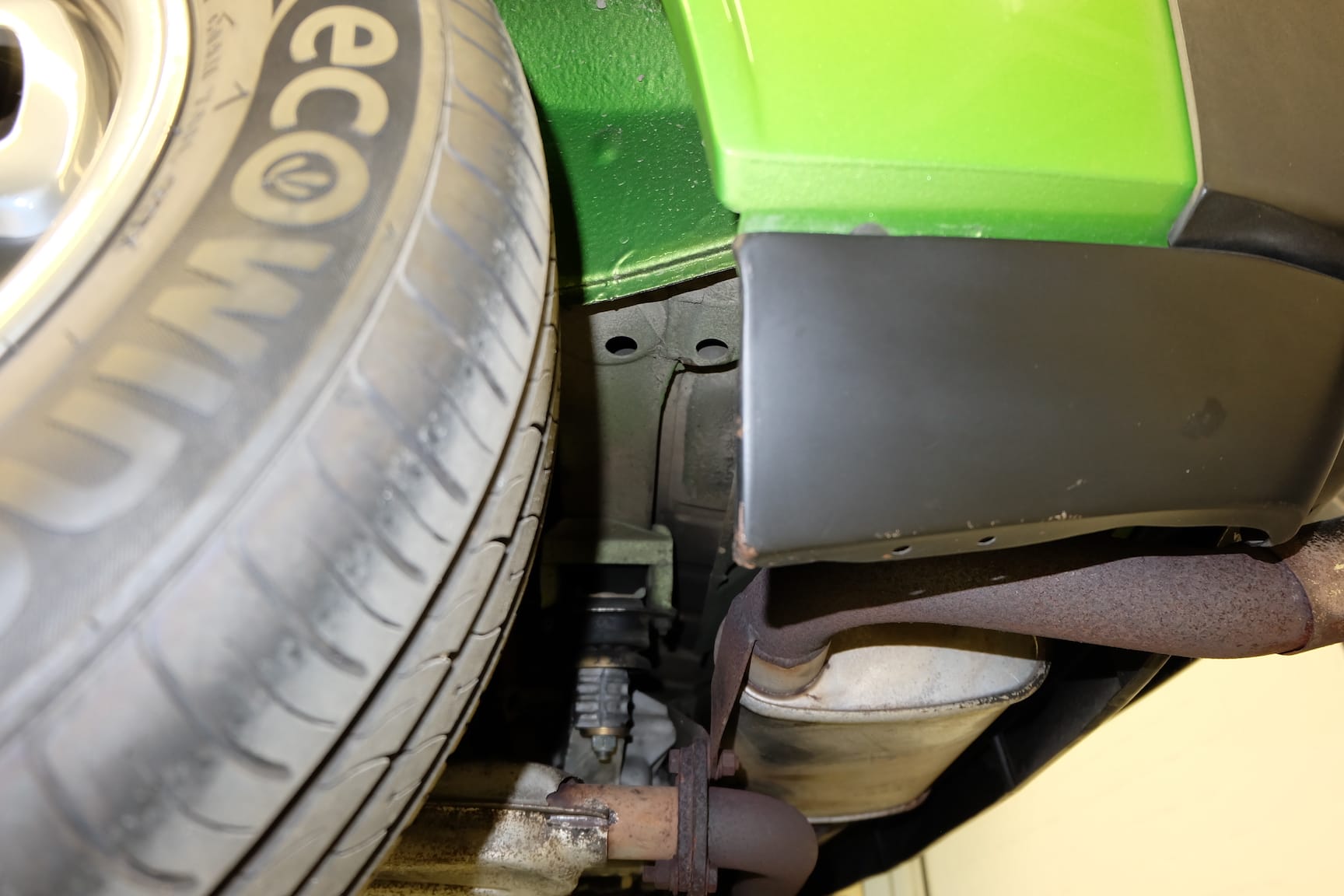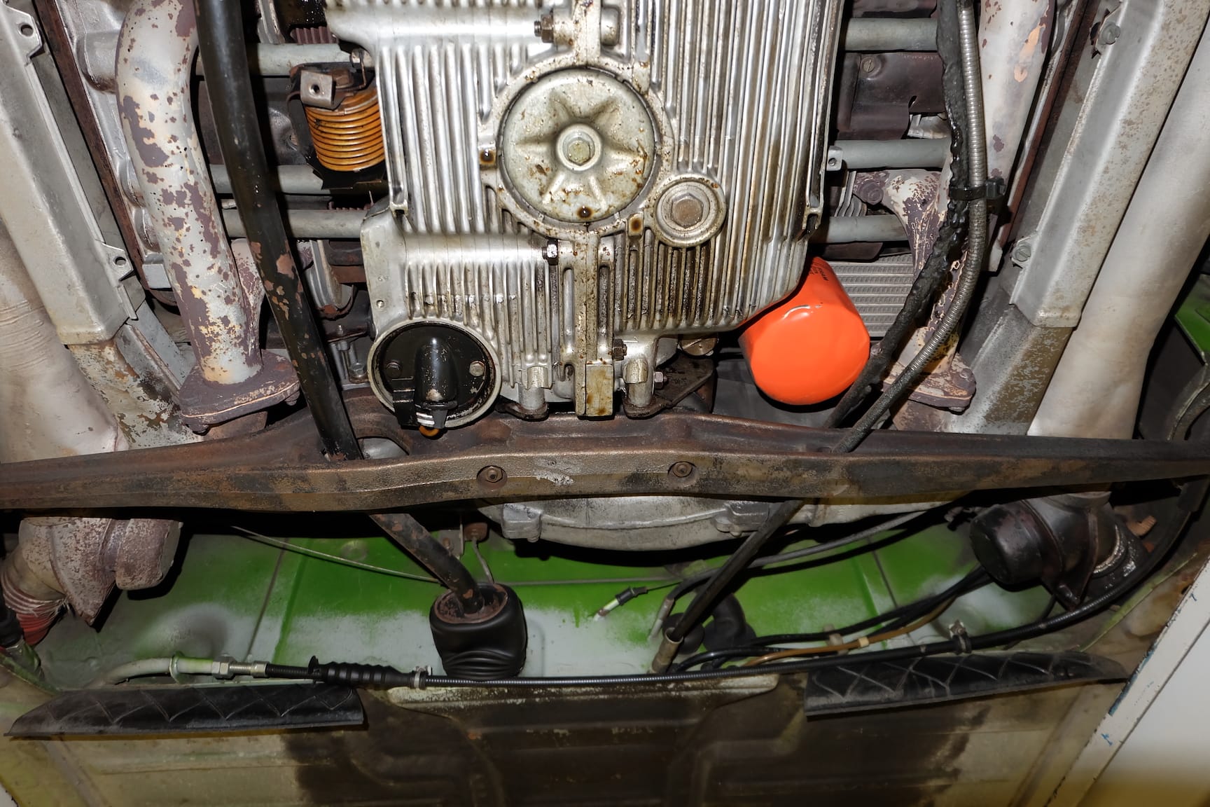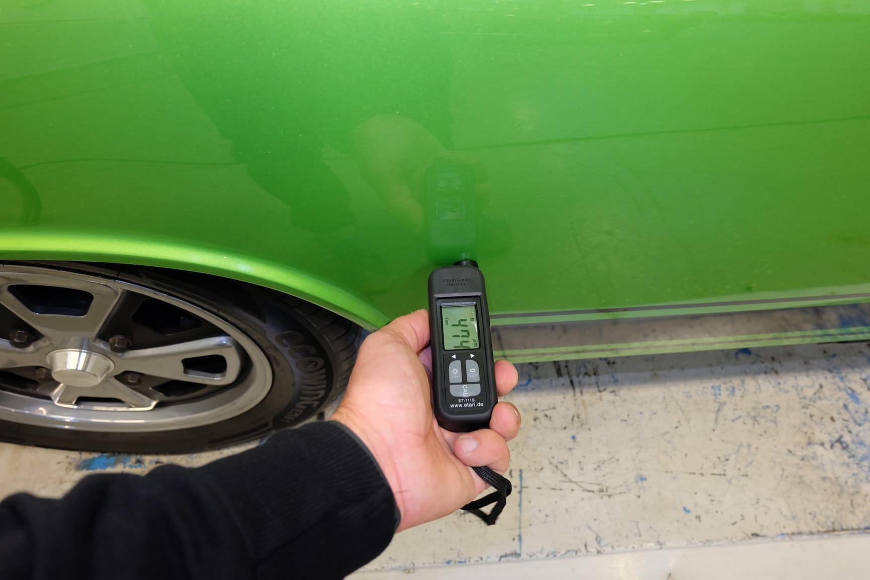 The Car was stripped down and on the outside of the Car, the colour was removed. He kept the original paint on the inside of the Car like the Trunk,l engine Compartment and the storage room for the roof. As the colour was removed the wholes for the side markers of the American version were closed as well to give the side a sleeker look.