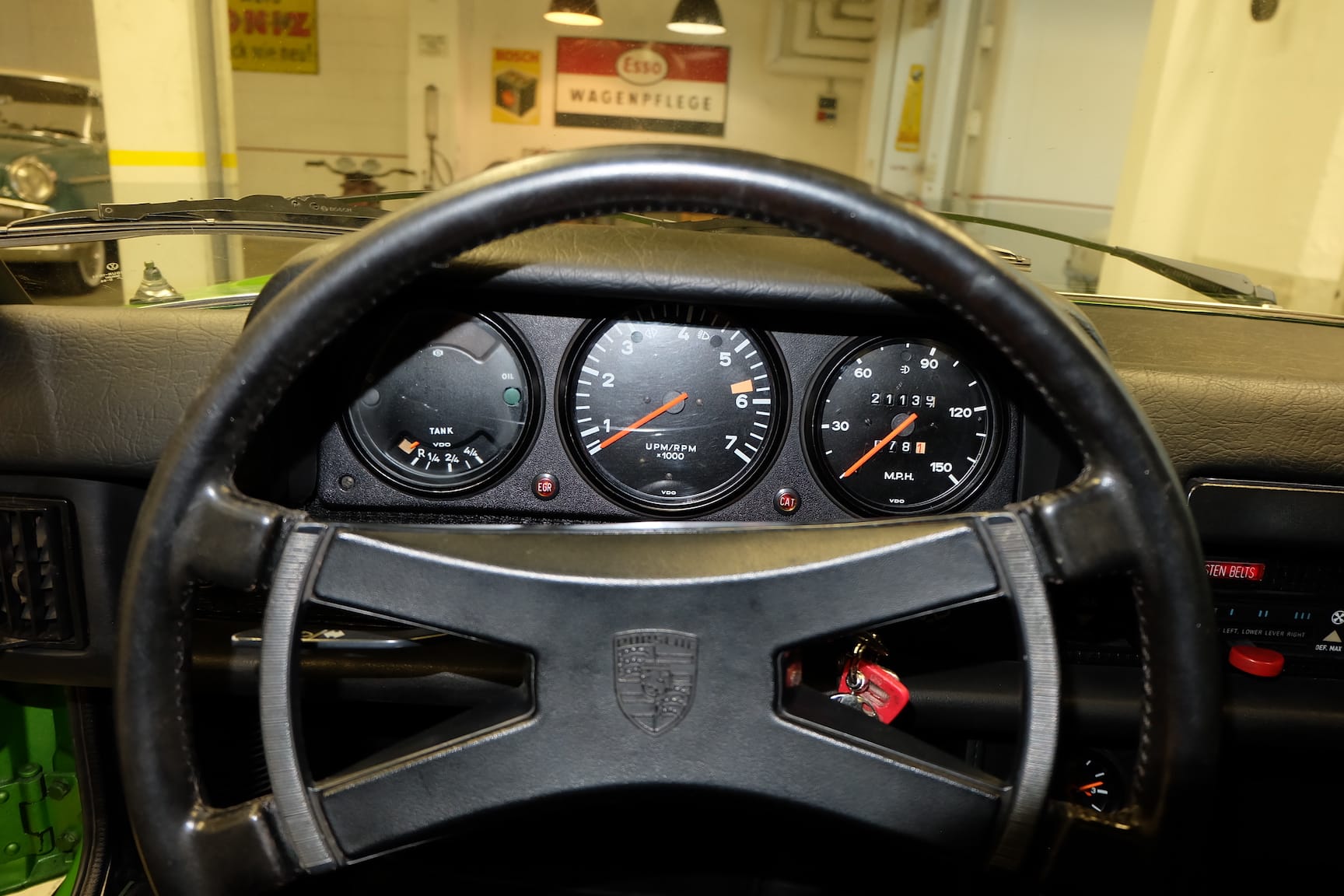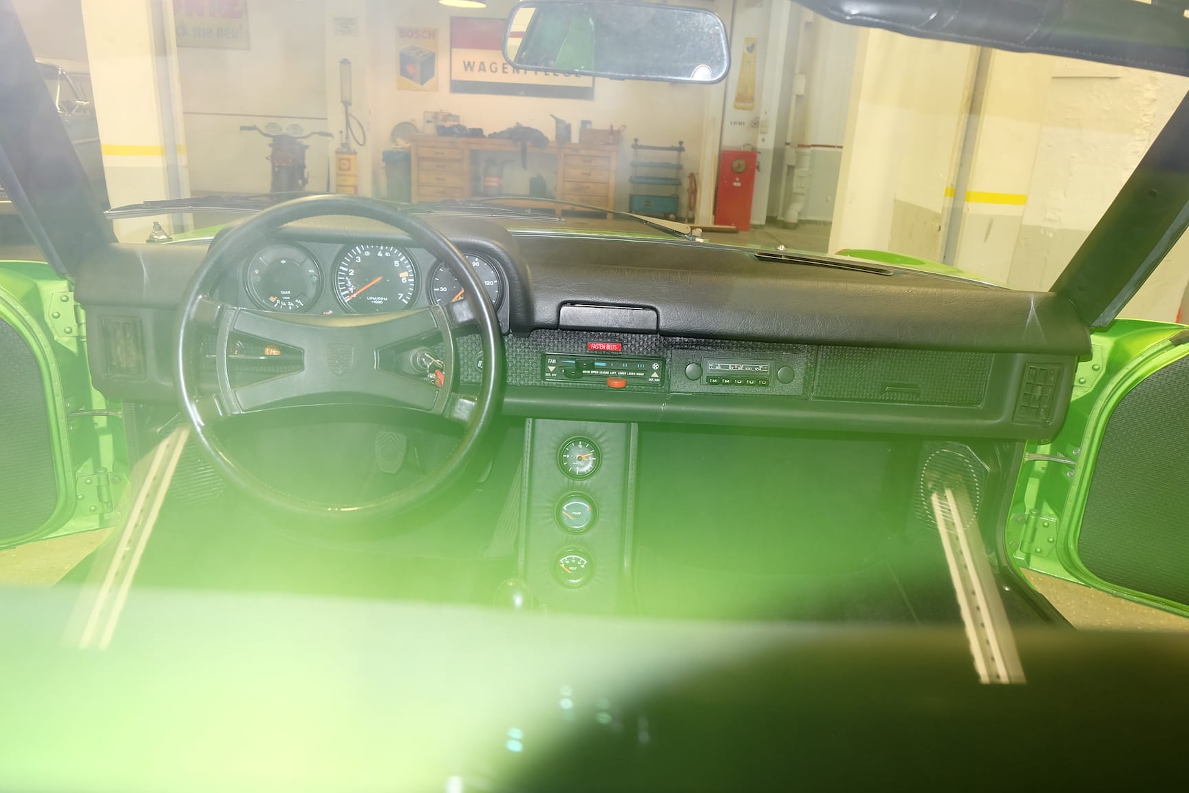 This 1976 VW / Porsche 914 2.0 was delivered in the rare colour of Vipergrün metallic to the USA. The current owner purchased it in California some years ago. Upon delivery, the Car was inspected to see the overall condition. The 914 was Rust free but the Sun from California burned down the structure of the colour.