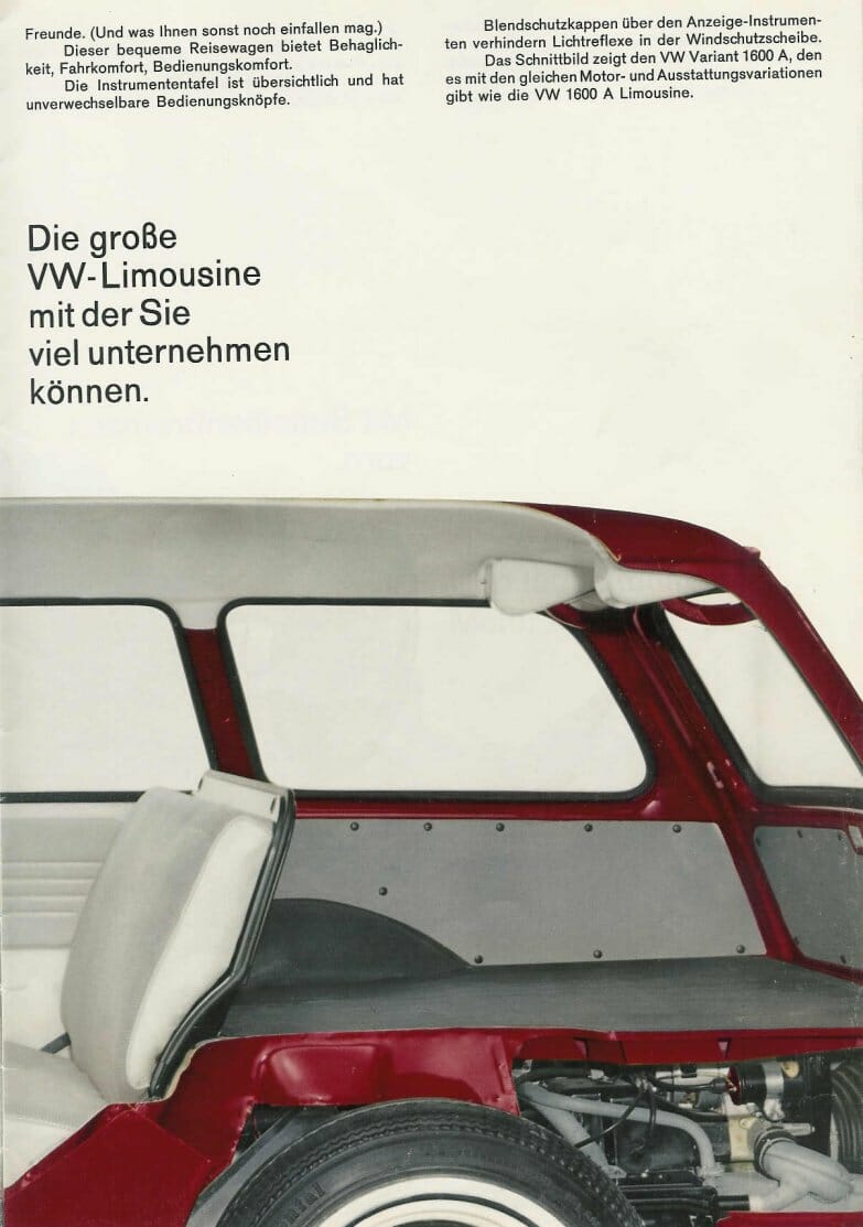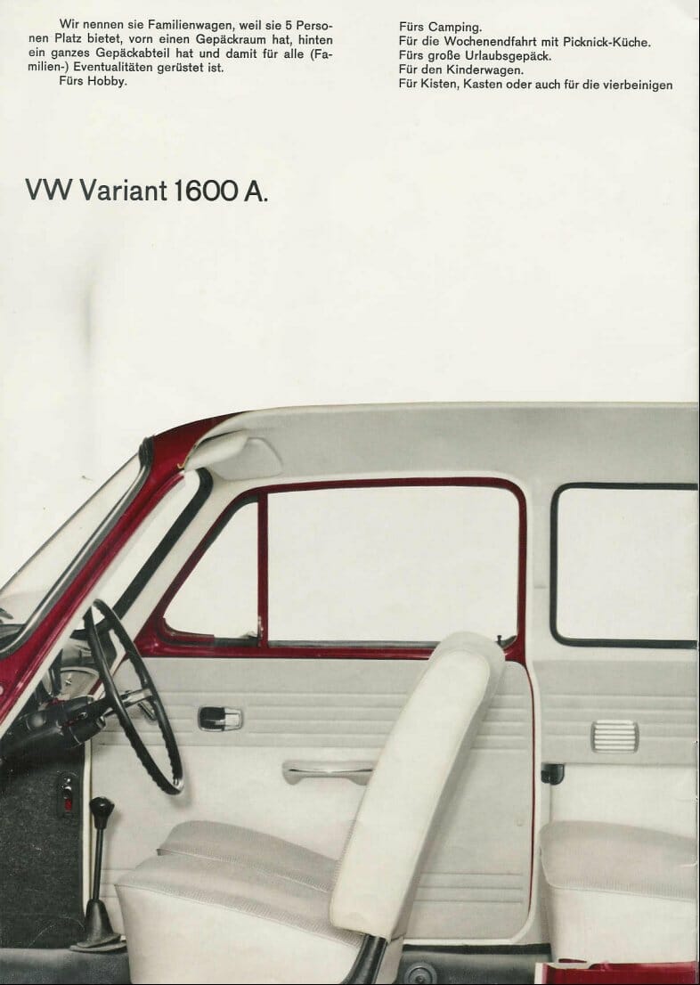 In 1968 Anton Sperl, the 1st owner, went to Volkswagen and ordered this here offered type 3 Variant in the dreamlike color combination toga white with red interior and had it delivered to him on 21.11.1968.